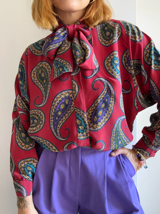 Abstract Print Bow Shirt